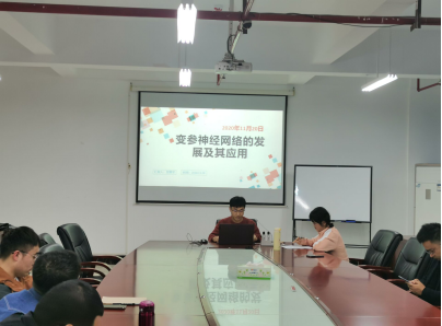 贺勇军同学做了题为《变参神经网络的发展及其应用》的学术交流,他向大家介绍了人工神经网络靠的是正向和反向传播来更新神经元,本质上, 这是一个能让计算机处理和优化的数学模型。