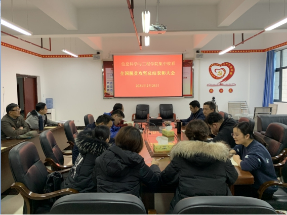 2月25日上午10:00,公司党政班子成员、办公室、学工办、教务办、各支部书记及各系部主任在学院会议室集中收到了全国脱贫攻坚总结表彰大会,其他老师在家自行收看。