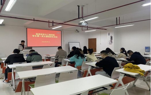 (通讯员陈雯婷)2021年4月1日上午10:00,信息科学与工程学院员工第一党支部党员大会在公司315教室召开。公司党委副书记、经理杨喜、党支部全体党员及入党积极分子参加本次会议。会议由党支部书记印煜民主持。