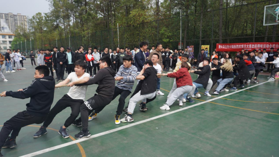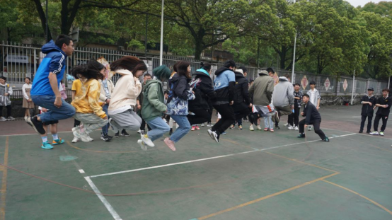 本次趣味运动会共有拔河和跳长绳两个项目。在拔河比赛中,随着裁判的哨声响起,参赛选手的眼神便骤然尖锐,脸上的表情因为正在用力而变得丰富多彩,他们心往一处想、劲往一处使,全力以赴地追寻胜利。中间的红绳左右摆动,同学们以高度的热情参与到比赛之中;在跳长绳的过程中,十位参赛选手齐心协力,共同跳过翻飞的长绳。虽然有的同学会慢半拍,但也会在同伴的鼓励下迅速调整过来。同学们跃动的身影里尽显青春的激情,“绳”采飞扬中满是团结精神韵动的节奏。