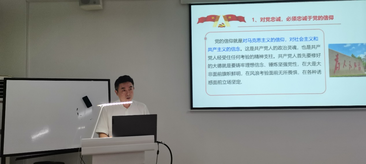 黄生祥以“学习百年党史 崇尚立身之德”为题给同学们讲授了一堂党课。国无德不兴,人无德不立。黄生祥分别从崇尚“对党忠诚的大德、为民造福的公德、严于律己的私德”三个方面进行了阐述。他指出,崇德是一种精神动力,学史崇德,就是要从党的百年奋斗征程中感悟并崇尚一代代共产党人对党忠诚的大德,筑牢信仰之基,自觉用先进的理论知识武装头脑,全面贯彻执行党的方针政策;就是要恪守公德,全心全意为人民服务,坚持立党为公,执政为民,密切联系群众;就是要在党史学习中感悟并崇尚老一辈革命家严于修身律己、自觉接受监督约束、严格家教家风的伟大品格,自觉把个人追求和人生价值体现在为党和人民事业奋斗之中,时刻牢记党员的身份,严于律己,以身作则,自觉接受监督约束。