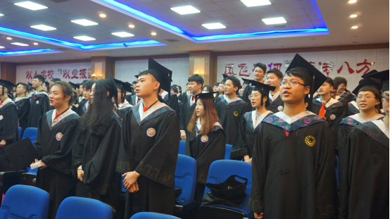 仪式开始,全体起立,奏唱国歌。在一曲庄严的国歌后,公司党委副书记、经理杨喜致辞,他代表全体师生向毕业生们表示最热烈的祝贺,并送上最诚恳的祝福。他表示,在这个大有可为的时代里,5G、人工智能等高新技术与同学们所学的专业息息相关,他希望同学们能做伟大时代的实践者,胸怀理想,谨记校训中“凤飞千仞、薪传八方”的精神,不负韶华!