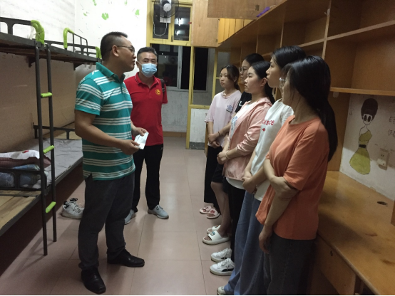 黄生祥关切地询问了研究生新生来自哪里,对新环境是否适应等问题。同时,深入了解员工们的假期生活情况,希望员工能够规律自己的作息时间,尽早找回校园生活的学习状态。王伟了解了每个寝室的设备好坏情况,指出要及时上报需要维修的设备,早点让校园生活步入正轨。
