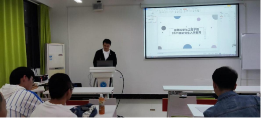 2021年10月12日下午,信息科学与工程学院在新工科楼C315召开2021级研究生入学教育会议。经理杨喜教授、党委副书记王伟、副经理张仁民博士、培养办吴彬老师、高年级部分优秀员工代表及全体2021级电子信息专业硕士研究生出席会议,会议由张仁民主持。
