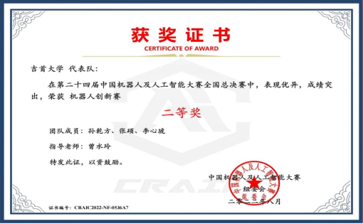 在湖南省赛区比赛阶段,公司选拔八支队伍参赛,获得省级一等奖2项、三等奖1项。获得一等奖的两件作品被省赛组委会推荐参加全国总决赛,公司第一次参加中国机器人及人工智能大赛就获得上述优异成绩。