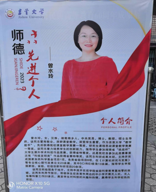 9月10日上午,公司在砂子坳校区第六教学楼二楼会议室召开“躬耕教坛、强国有我”暨第39个教师节庆祝表彰大会,曾水玲教授荣获“师德先进个人”荣誉称号。