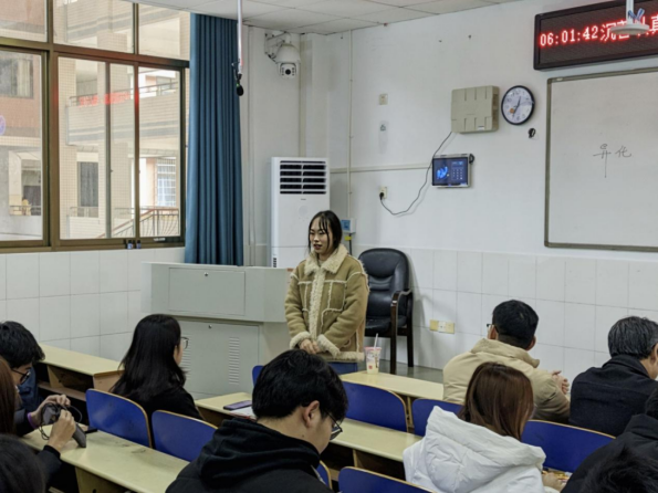 图为 学工办员工助理田仁睿自我介绍