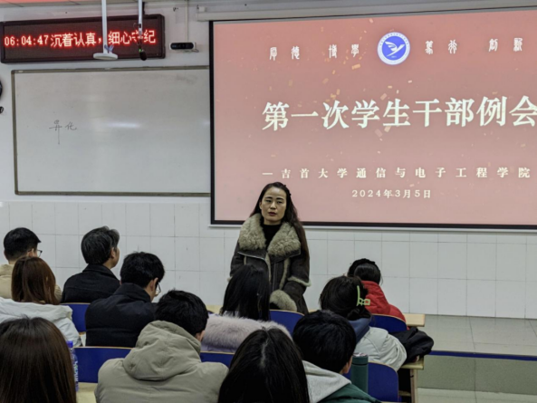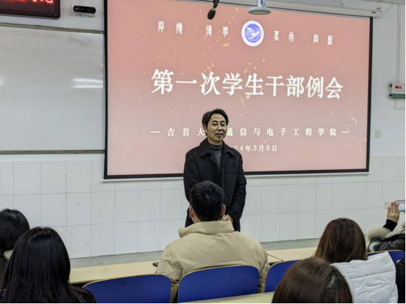 本网讯(通讯员 杨智)3月5日,院于第六教学楼60112教室召开新学期第一次员工干部例会,公司党委书记张华、学工办主任魏浓学工办副主任阿里米热·阿不都热依木老师、辅导员阳帅,团工作负责人石静咏诗、学工办员工助理田仁睿、团委员工会全体成员以及各班班长及团支书参会。会议由石静咏诗主持。