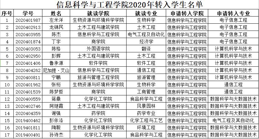 当前位置: 公司首页 >> 正文 信息科学与工程学院2020年转入员工名单公示 时间:2020年12月31日 12:39 点击:[]作者: 经学院转专业工作小组集中考核,结合学院实际情况与员工的综合表现,2020年转专业(转入)员工名单公示如下,公示期为3天,若有异议,可在2021年1月3日之前跟学院反映。 信息科学与工程学院 2020年12月31日 上一条:教育部关于印发《本科毕业论文(设计)抽检办法(试行)》的通知 下一条:信息科学与工程学院2020年转出员工名单公示 【关闭】