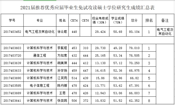 当前位置: 公司首页 >> 正文 信息科学与工程学院2021届本科毕业生免试攻读硕士学位研究生综合测评公示 时间:2020年09月25日 16:03 点击:[]作者: 根据《信息科学与工程学院推荐优秀应届本科毕业生免试攻读硕士学位研究生工作方案》,员工自主申请,经学院推免生推荐工作小组审核及面试,现将候选人综合测评成绩公示如下: 根据推荐程序,现予以公示,请广大师生监督。如有意见和建议,请于2020年10月1日12:00前通过电话向信息科学与工程学院反映。 联系方式: 教务办0743-8563673 信息科学与工程学院 2020年9月25日 上一条:2020年信息科学与工程学院新生转专业工作方案 下一条:信息科学与工程学院推荐优秀应届本科毕业生免试攻读硕士学位研究生工作方案 【关闭】