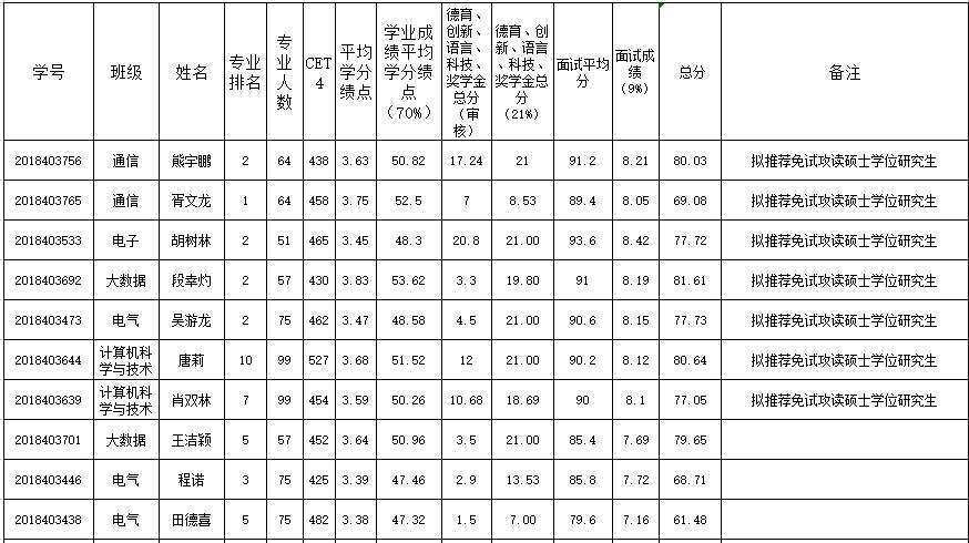 当前位置: 公司首页 >> 正文 信息科学与工程学院2022届本科毕业生免试攻读硕士学位研究生综合测评公示 时间:2021年09月16日 17:18 点击:[]作者: 信息科学与工程学院 2022届本科毕业生免试攻读硕士学位研究生综合测评公示 根据《信息科学与工程学院推荐优秀应届本科毕业生免试攻读硕士学位研究生工作方案》,员工自主申请,经学院推免生推荐工作小组审核及面试,现将候选人综合测评成绩公示如下: 根据推荐程序,现予以公示,请广大师生监督。如有意见和建议,请于2021年9月17日10:00前通过电话向信息科学与工程学院反映。 联系方式: 教务办0743-8563673 信息科学与工程学院 2021年9月16日 上一条:信息科学与工程学院2021-2022-1学期学业预警公示 下一条:信息科学与工程学院推荐优秀应届本科毕业生免试攻读硕士学位研究生工作方案 【关闭】