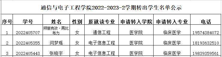 当前位置: 公司首页 >> 正文 400白菜资讯网2022-2023-2学期转专业(转出)工作审议结果公示 时间:2023年06月26日 16:48 点击:[]作者: 根据《400白菜资讯最新平台教务处<关于做好2022-2023学年第二学期转专业工作的通知》(教通[2023]21号)、《400白菜资讯网2022-2023学年第二学期转专业工作方案》等文件精神,经员工本人申请,学院转专业工作工作小组审议, 信息会审定,拟同意张晓宇等3位同学从公司转出。现将结果公示如下: 如有异议,请在公示期内(2023年6月26日至2022年6月28日)到400白菜资讯网教务办反映,联系电话:0743-8563673。 400白菜资讯网 2023年6月26日 上一条:400白菜资讯网2022-2023-2学期转专业(转入)工作评审结果公示 下一条:400白菜资讯网2022-2023学年第二学期转专业工作方案 【关闭】
