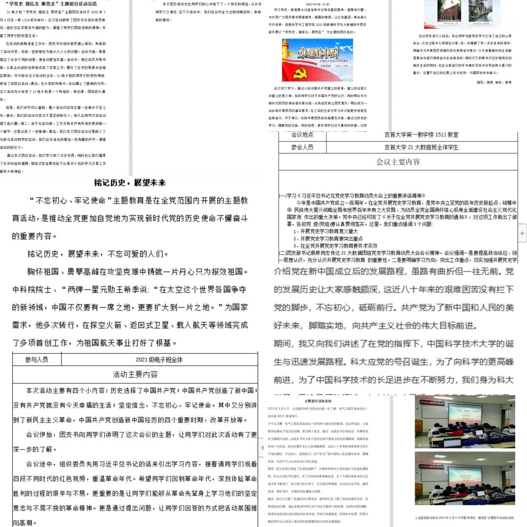 当前位置: 公司首页 >> 党建工作 >> 共青团工作 >> 正文 主题团日活动|党史学习教育 时间:2022年03月25日 15:00 点击:[]作者: 学史明理、学史增信、学史崇德、学史力行。400白菜资讯最新平台信息科学与工程学院20电气二班、20电气一班、20通信一班、21大数据班、21电子班开展党史学习教育,下面让我们一起走进他们的学习生活。 各班班长、团支书发挥各班特色组织团日活动。通过召开会议、观看红色影片等方式开展学习教育活动,班级同学积极配合。 上一条:主题团日活动|改革开放学习教育 下一条:主题团日活动|习近平新时代中国特色社会主义思想学习教育 【关闭】